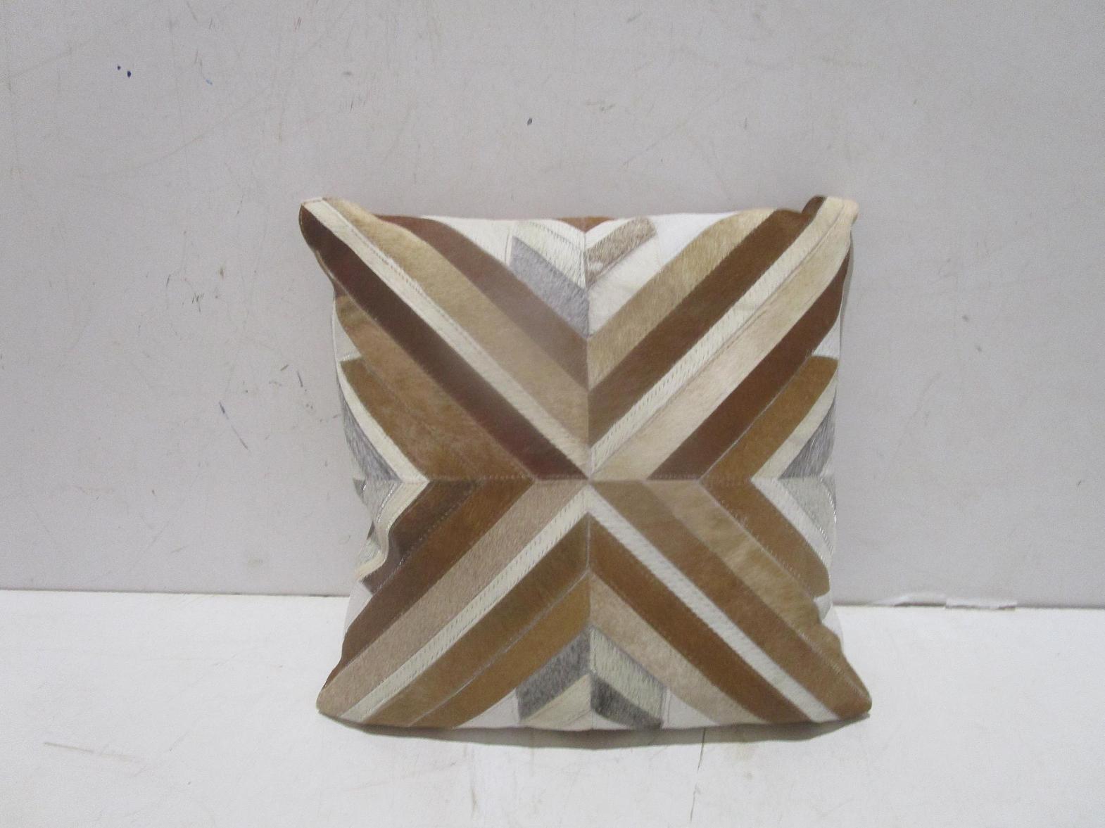 Cushion non woven fabric with leather patch work and cotton back 450gsm filling and vaccum pack #ref:dc204 45x45 cm grey# 10ac#