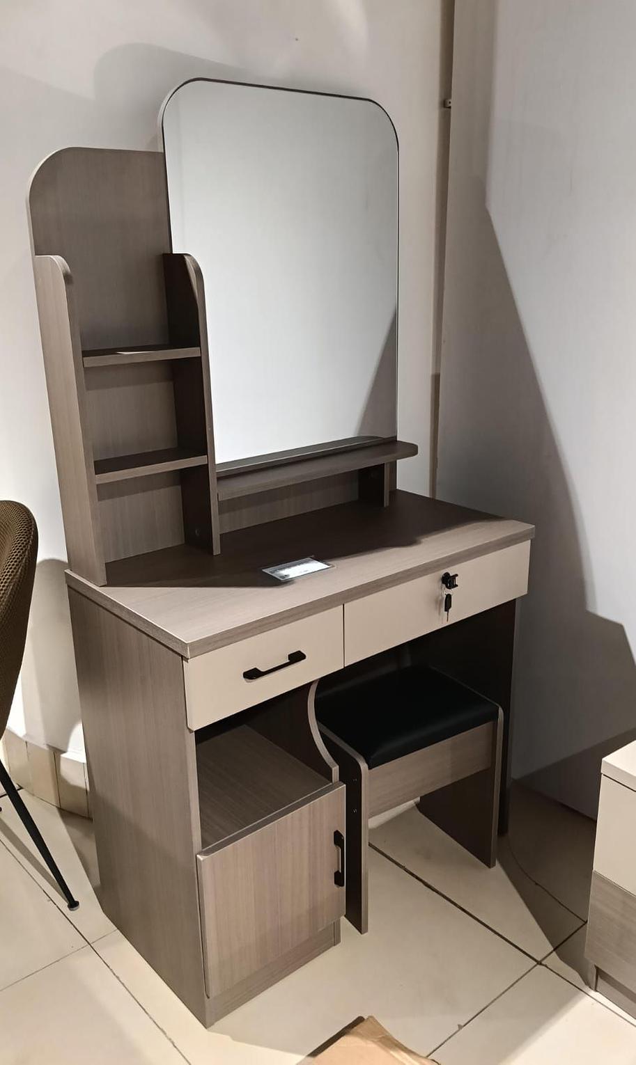 Dresser+ mirror + stool 02 dk beige with walnut 15mm mdf +melamine 800*400*153mm #ref:6b01-drs# 1ac#