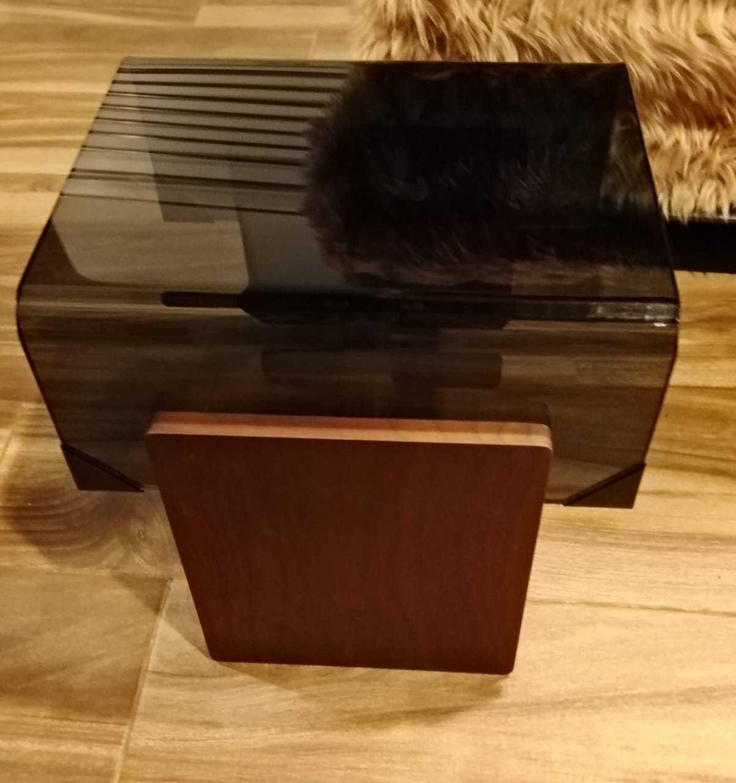 End table 12mm glass, wood feet grey glass walnut leg 45*40*45 #ref:s1998# 2cl#