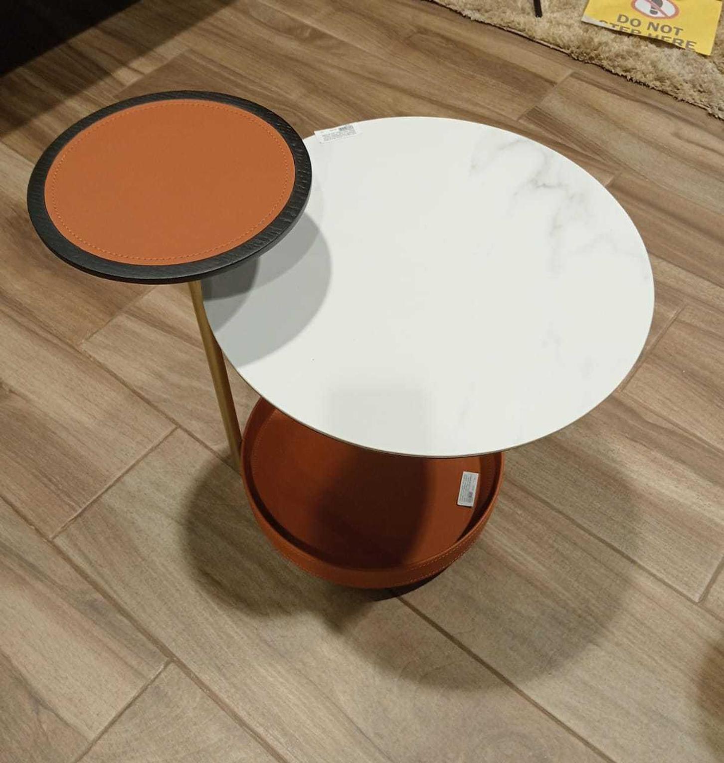 The Barenia 3-Layer End Table is a masterpiece of modern craftsmanship, designed to elevate your interior with sophistication and style. Its elegant white-beige ceramic top offers a smooth, durable surface that’s both beautiful and easy to maintain, while the barenia leather base adds a touch of warmth and texture. The stainless-steel legs provide strength and stability, complementing the table’s contemporary aesthetic. Featuring a unique three-tier structure with a tray-style upper layer, this end table delivers both form and function—ideal for displaying décor, holding drinks, or organizing essentials. Perfect for living rooms, lounges, or offices, the Barenia End Table is a timeless blend of elegance, practicality, and modern luxury.