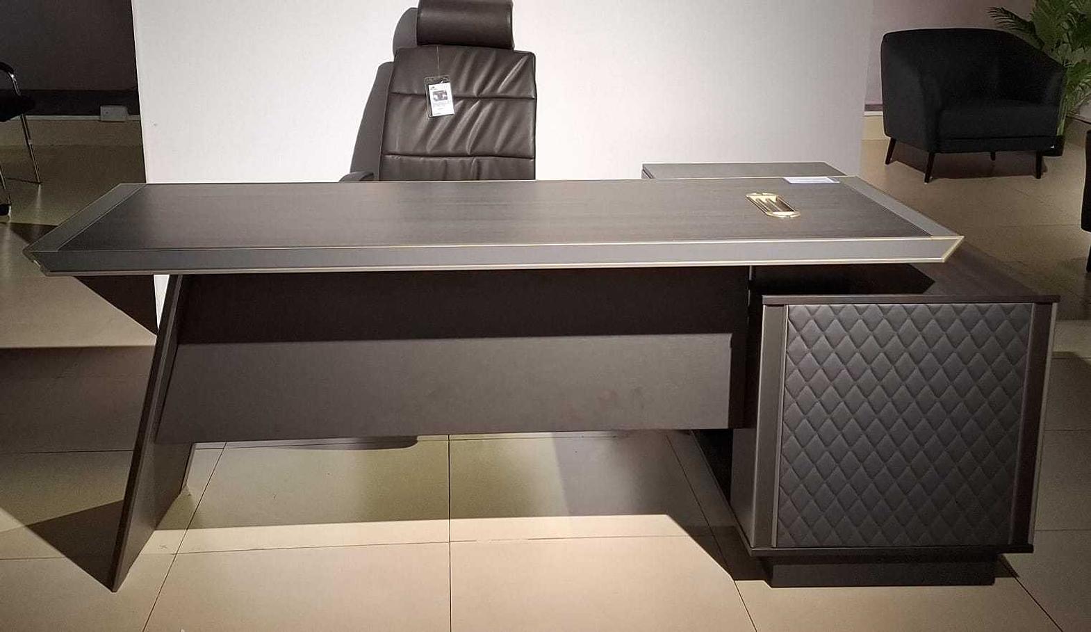 The Executive Desk is a premium workstation crafted with a durable melamine surface in a rich purple teak wood finish. Designed with a left-hand return, it offers an ergonomic workspace layout ideal for executive offices or professional environments.