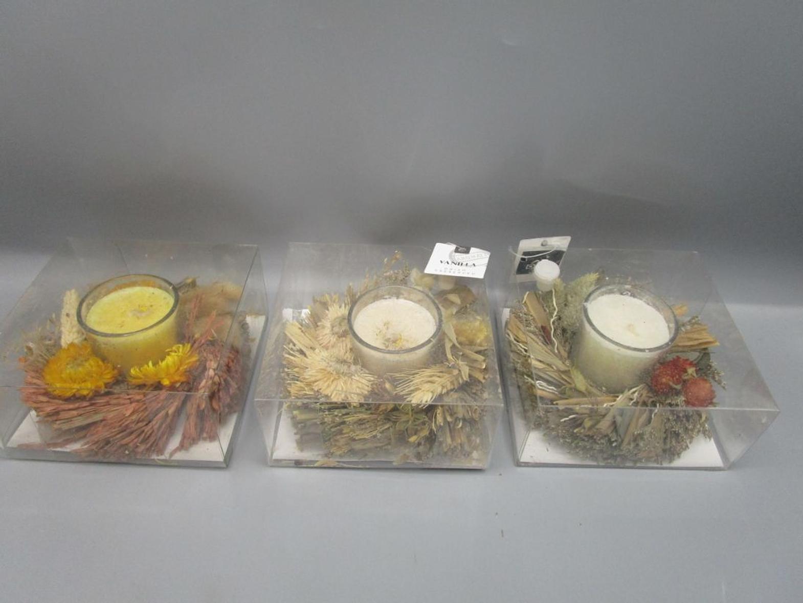 FRESH FLORAL CANDLE ARRANGEMENT IN PVC BOX 1 2X12X6 CM 01. YELLOW-WATER LILY 02. PINK ROSE - ROSE 03. NAT - VANILLA #REF:DP279001-03-05 1 2X1# 12AC#