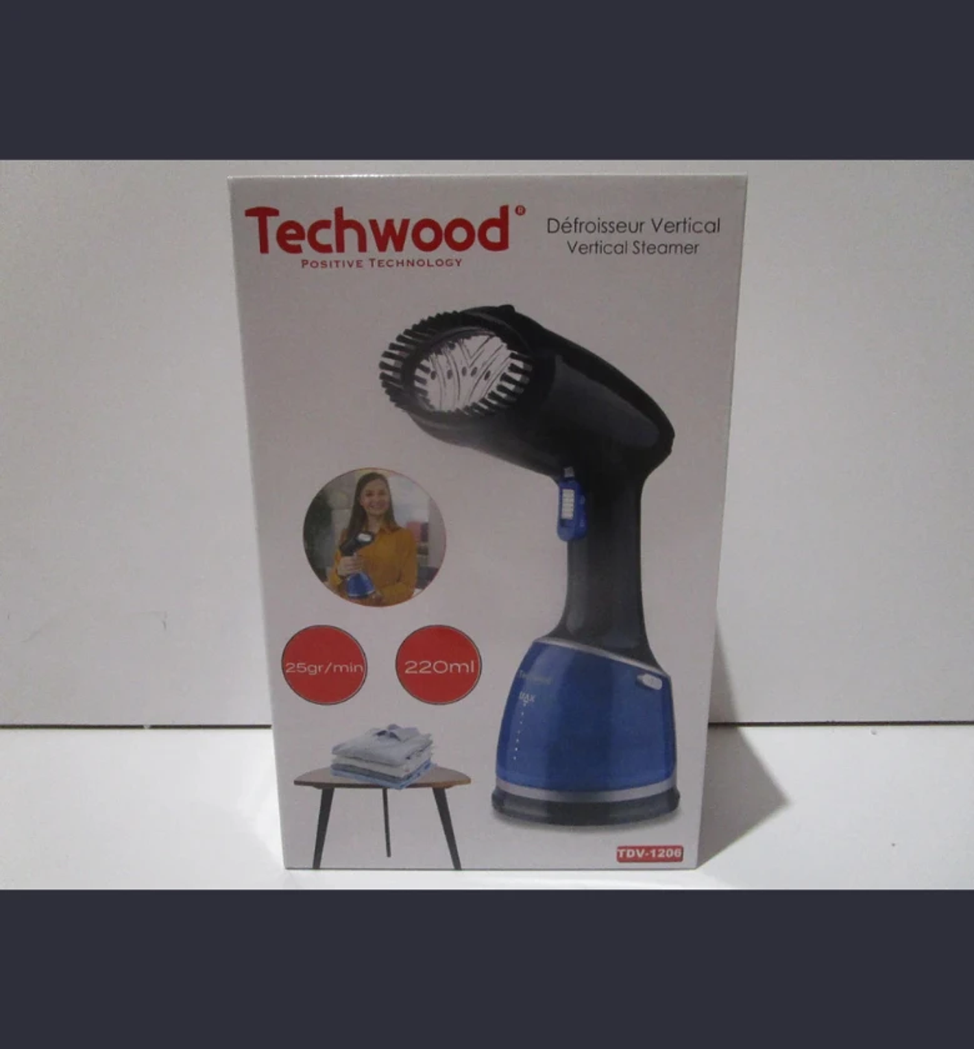 Steamer vertical continuous steam position fast heating: - 30 seconds steam flow 12-20g/min autonomy up to 10 minutes - automatic shutdown removable 200ml water tank - removable brush for thick fabrics cable length: 1.70m power 1500w #ref:tdv-1206# 6ac#