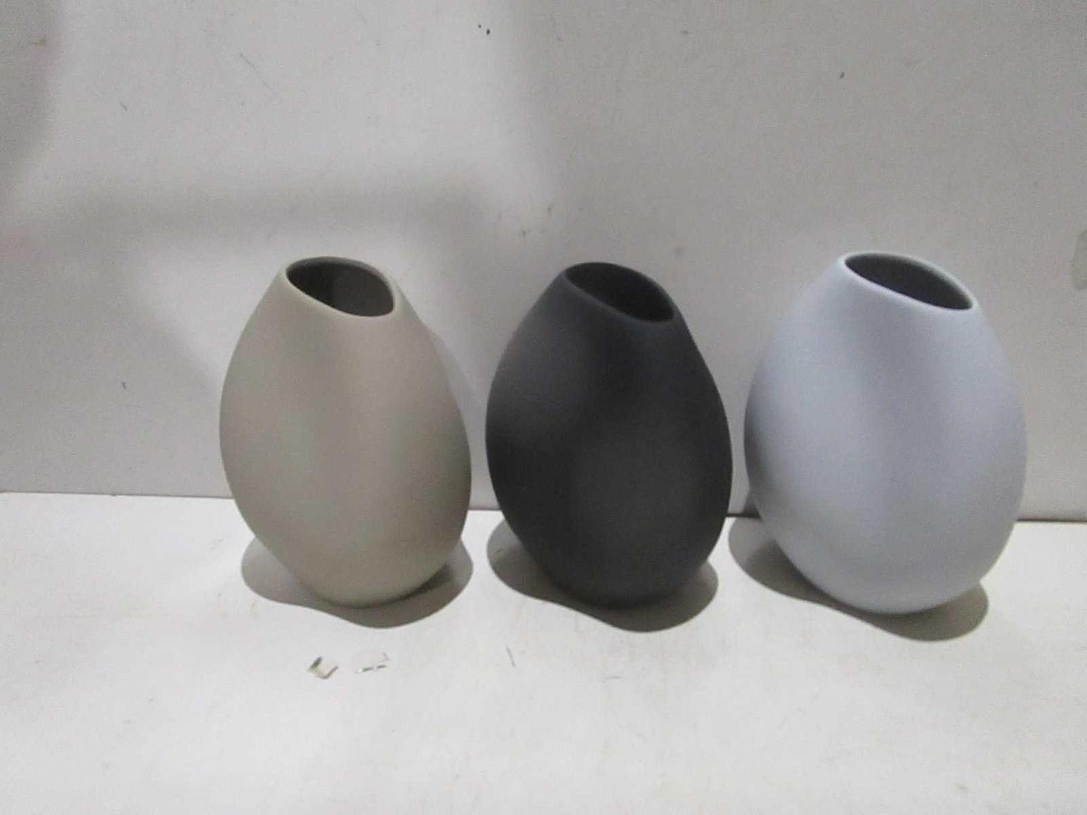 Decorative vase set in three assorted colors—black, white and gray
