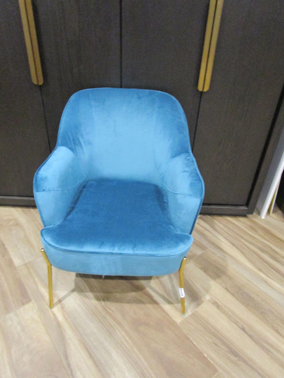 This velvet armchair is designed to bring a touch of luxury and comfort to any interior. Upholstered in plush blue-green teddy velvet, it offers a soft, inviting feel while making a bold statement with its rich color. The gold-finished metal legs add a sophisticated contrast, blending contemporary design with timeless elegance. With a well-sized frame (65 × 77 × 80 cm), it provides both comfort and style, making it ideal for living rooms, lounges, or bedrooms. Whether used as a statement piece or paired with complementary furniture, this armchair enhances any space with modern charm and cozy refinement. ARM CHAIR IN VELVET FABRIC WITH LEGS IN METAL GOLD BLUE GREEEN TEDDY 85 #REF:DELLA 3 65X77X80 CM# 1CL#