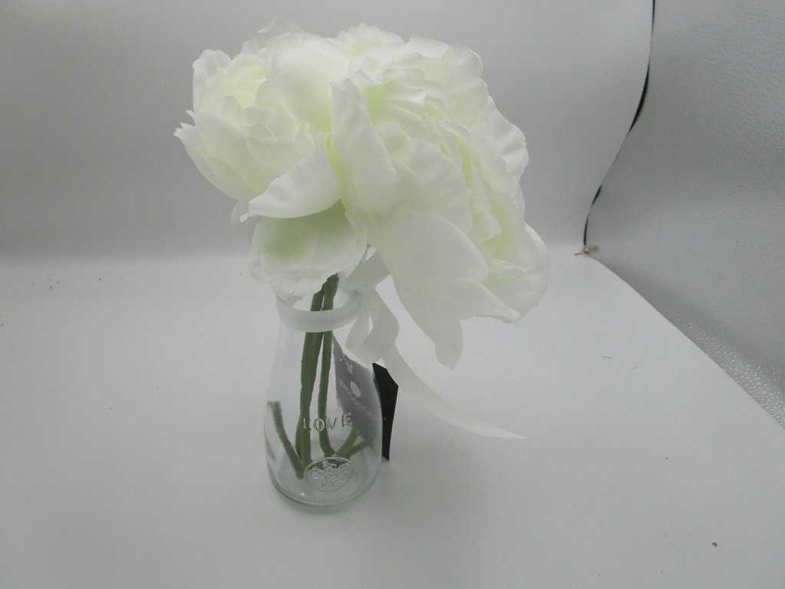 Artificial 3 peony glass vase h25 #ref:114801# 12ac#