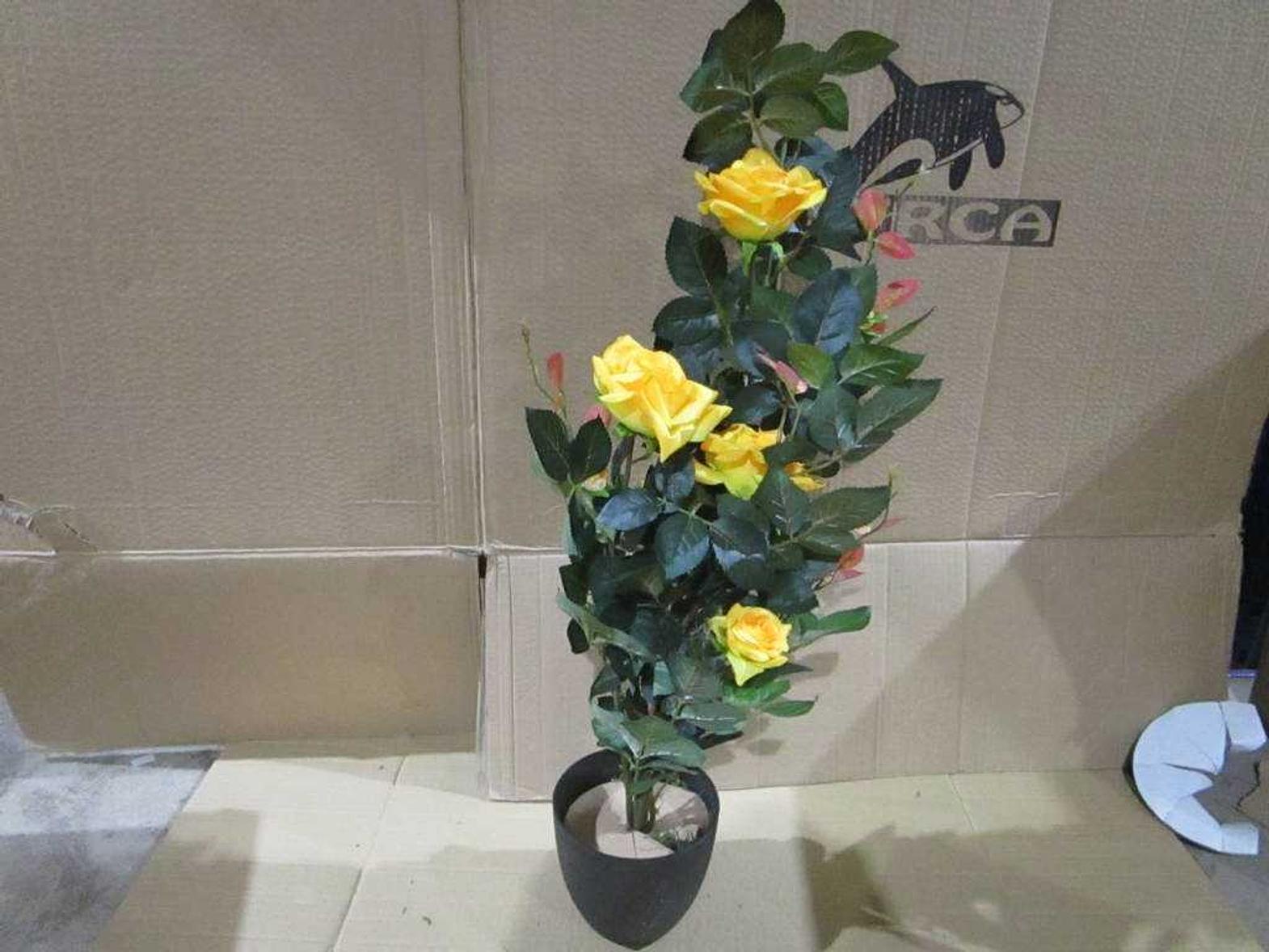 A charming artificial rose plant with 5 lifelike blooms in a decorative pot. Perfect for adding elegant, maintenance-free floral décor.