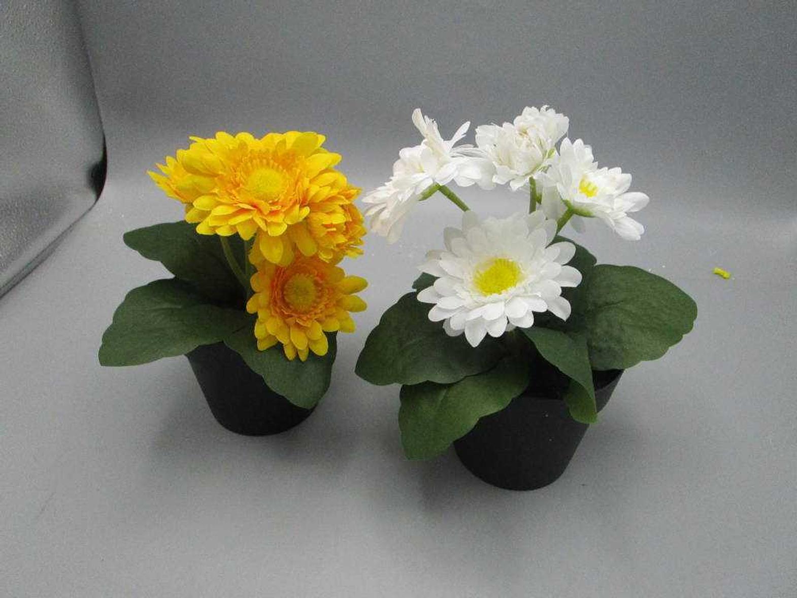 A vibrant artificial gerbera plant with 5 yellow blooms in a decorative pot. Perfect for adding cheerful, maintenance-free floral accents to any space.