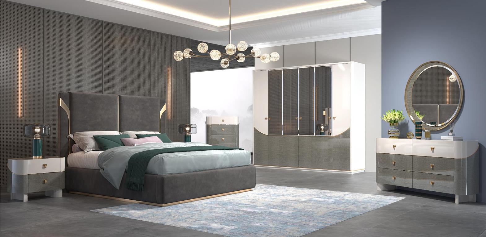 The 242-1 Bedroom Set offers everything you need for a refined and functional sleeping space. At its centre is a spacious 1800x2000 mm bed, designed for maximum comfort and a sophisticated presence in your room. Two matching nightstands provide convenient bedside storage, while the dresser offers generous space for clothing and accessories. The included mirror adds brightness and depth to your space, and the matching pouf completes the set, offering extra comfort and versatility. Finished with quality craftsmanship and a coordinated design (Ref: 242-1, 14CL#), this set is built to last while enhancing your bedroom’s style and functionality. Bed 1800*2000+2ns+dresser+mirror+pouf #ref:242-1 1#