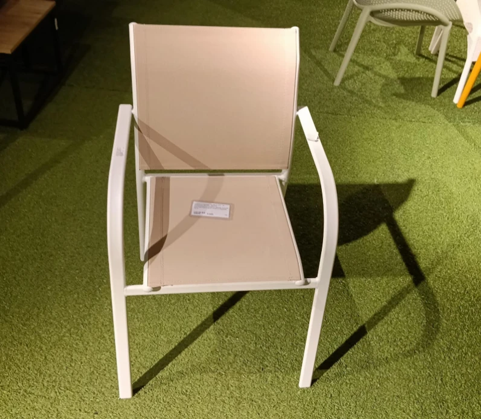 Chair stacking alum sling w/ armrest metal : white 31p8222060521 / fabric beige t211166 w56*d60*h83.5 #ref:44501f2-beige# 1cl#