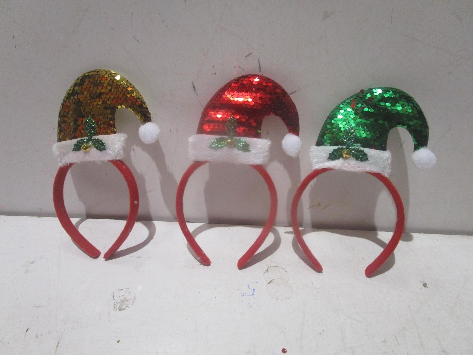 Christmas hair hoop with spring polyster+plastic packing 1pc opp bag 4 designs ass deer/snowman/tree/sanda 23*12cm #ref:6473-16# 192ac#
