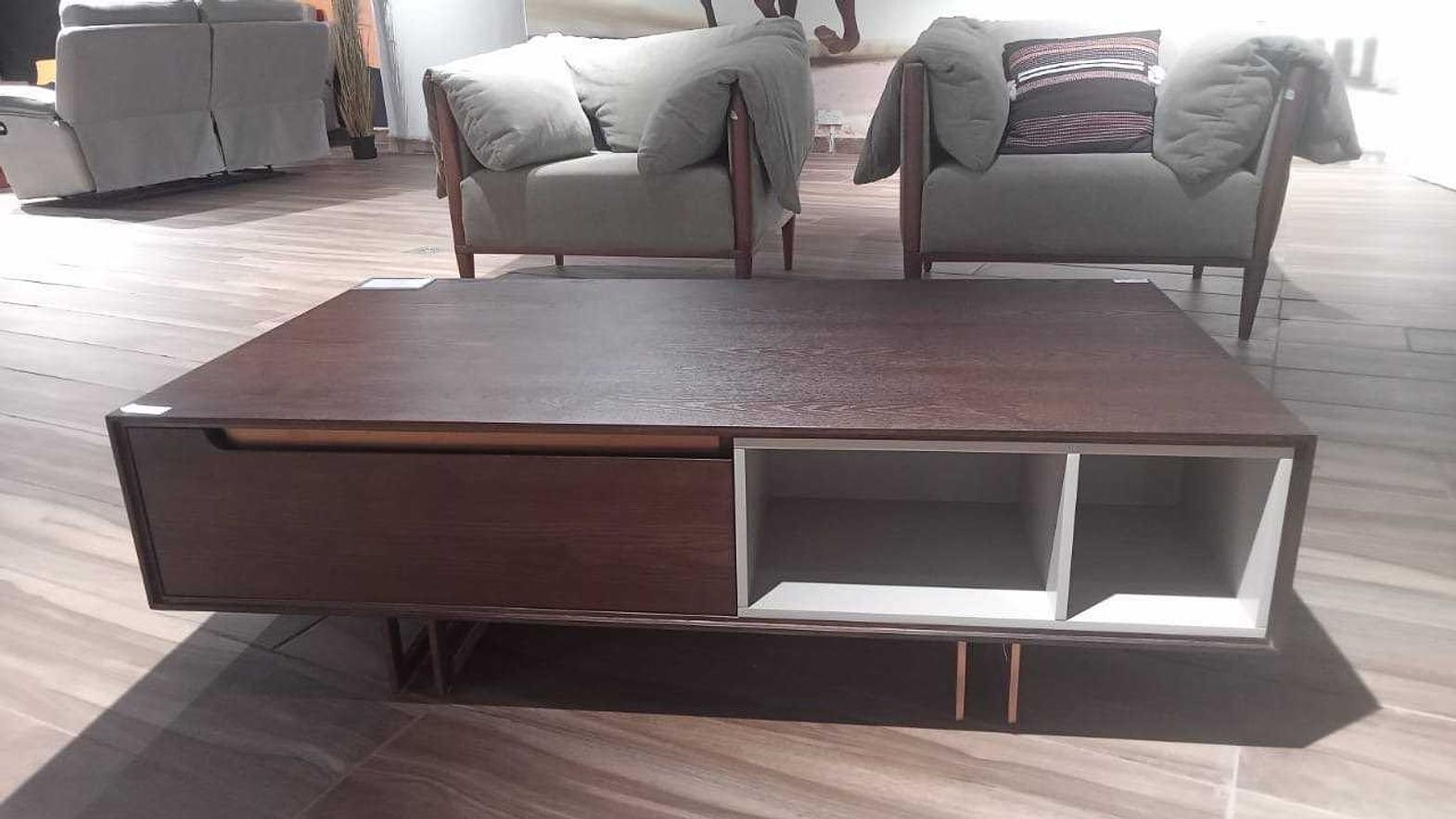 The SK-2142A coffee table combines natural warmth with contemporary strength, making it a refined centerpiece for your living space. Crafted with a rich walnut MDF top and supported by a polished stainless steel base, it strikes the perfect balance between elegance and durability. Its 130x70 cm surface provides ample room for entertaining, displaying décor, or everyday use, while the 40 cm height ensures a comfortable fit in any seating arrangement. With its timeless walnut finish and metallic accents, this coffee table seamlessly enhances both modern and classic interiors. Coffee table walnut mdf + ss base 1300*700*400 #ref:sk-2142a# 2cl#