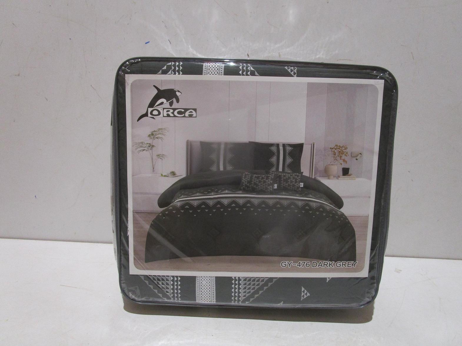 comforter 240x260cm set of 5 psc triangle embroider dark grey g073 2 pillow cases:50x70+5cm 2 cushions:30x50cm #ref:gy-476-dk grey# 5ac#