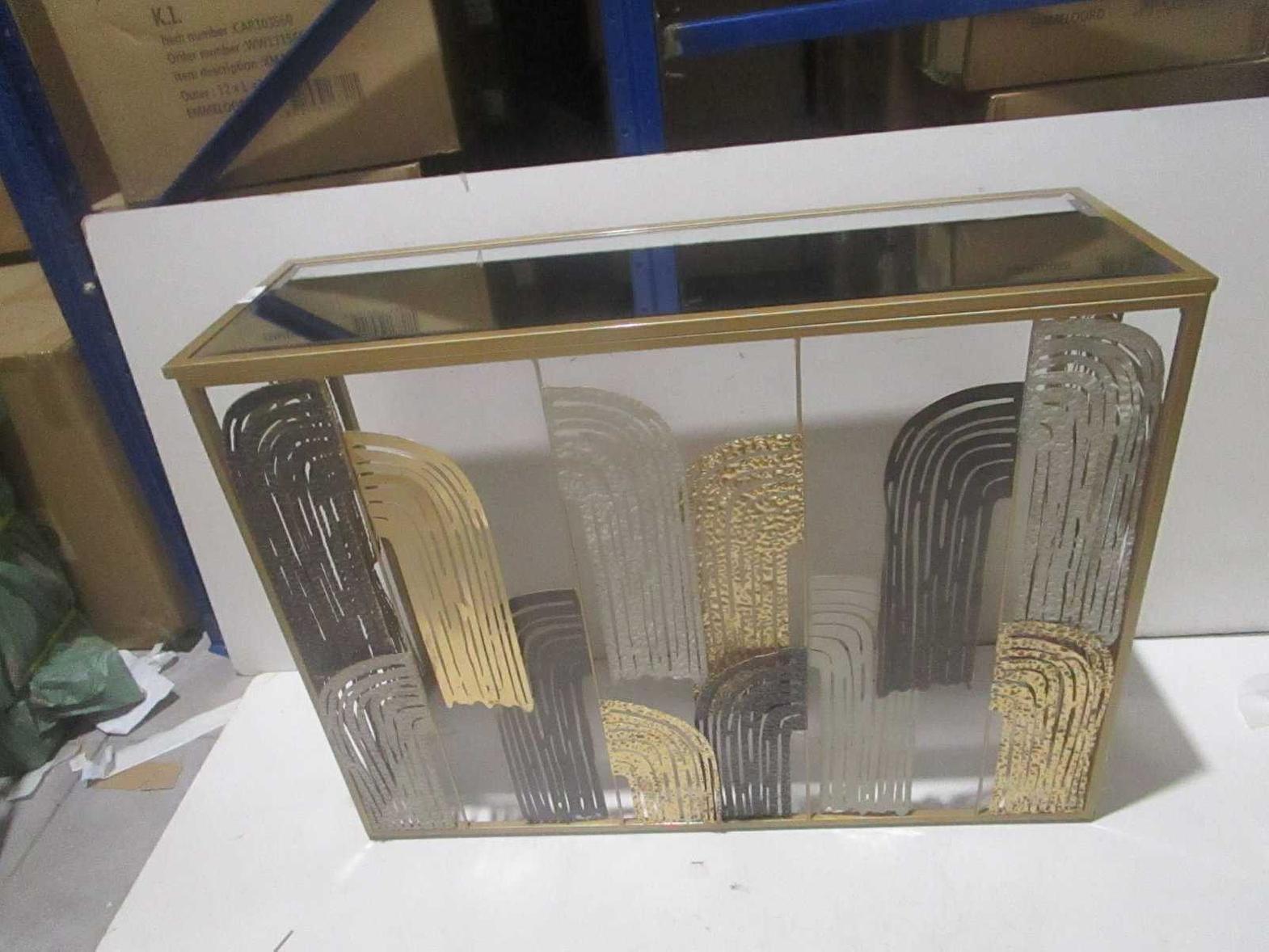 Constructed from high-quality metal with a mirror surface, this console table offers a perfect balance of durability and decorative sophistication. The blue pattern detailing adds color and texture, giving the piece a distinctive artistic character that complements both modern and classic interiors.