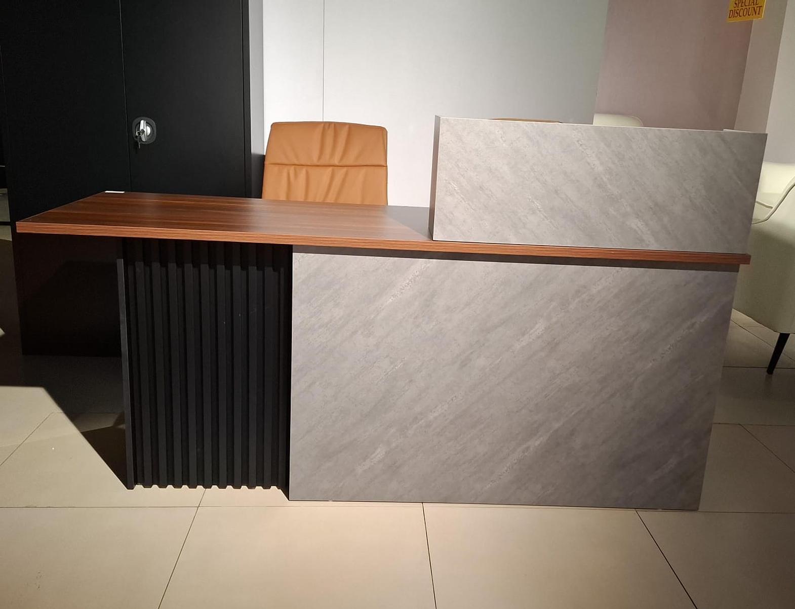Counter table by mfc. 211# king walnut + iron black + concrete grey 1800*600*1050 #ref:jq211-18a # 4cl#