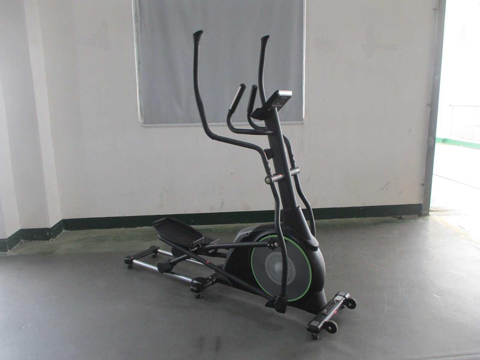 Cross trainer magnetic computer monitors: time, speed, distance, calorie, odo & pulse with tablet & ipad rack assembled size: 188 x67 x181cm 15 levels of magnetic resistance flywheel: 8 kgs, two way rotation disk crank carton size: 150x43.5 #ref:tf-8741t black green# 1ac#