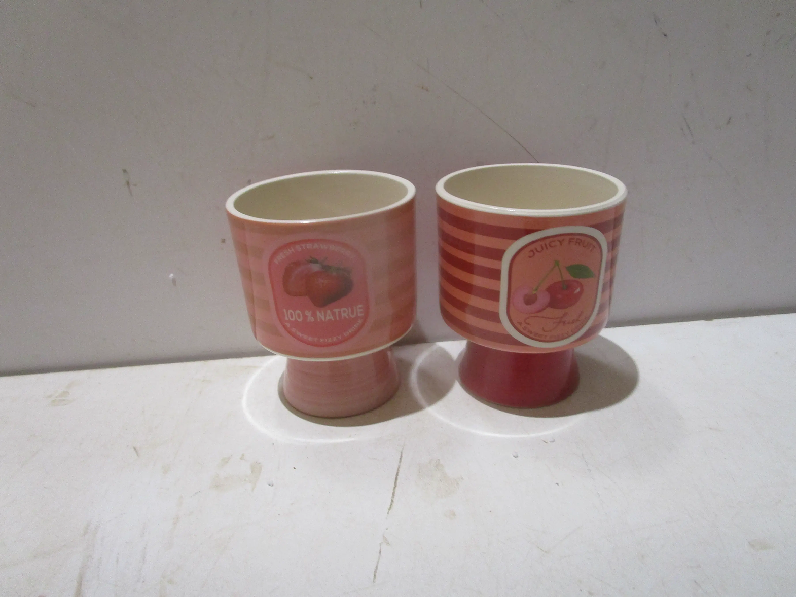 Cup with stand, two colors mix in carton, ceramic red+ pink dolomite dia 12.2x15.2 h #ref:d2406064r/3# 24ac#