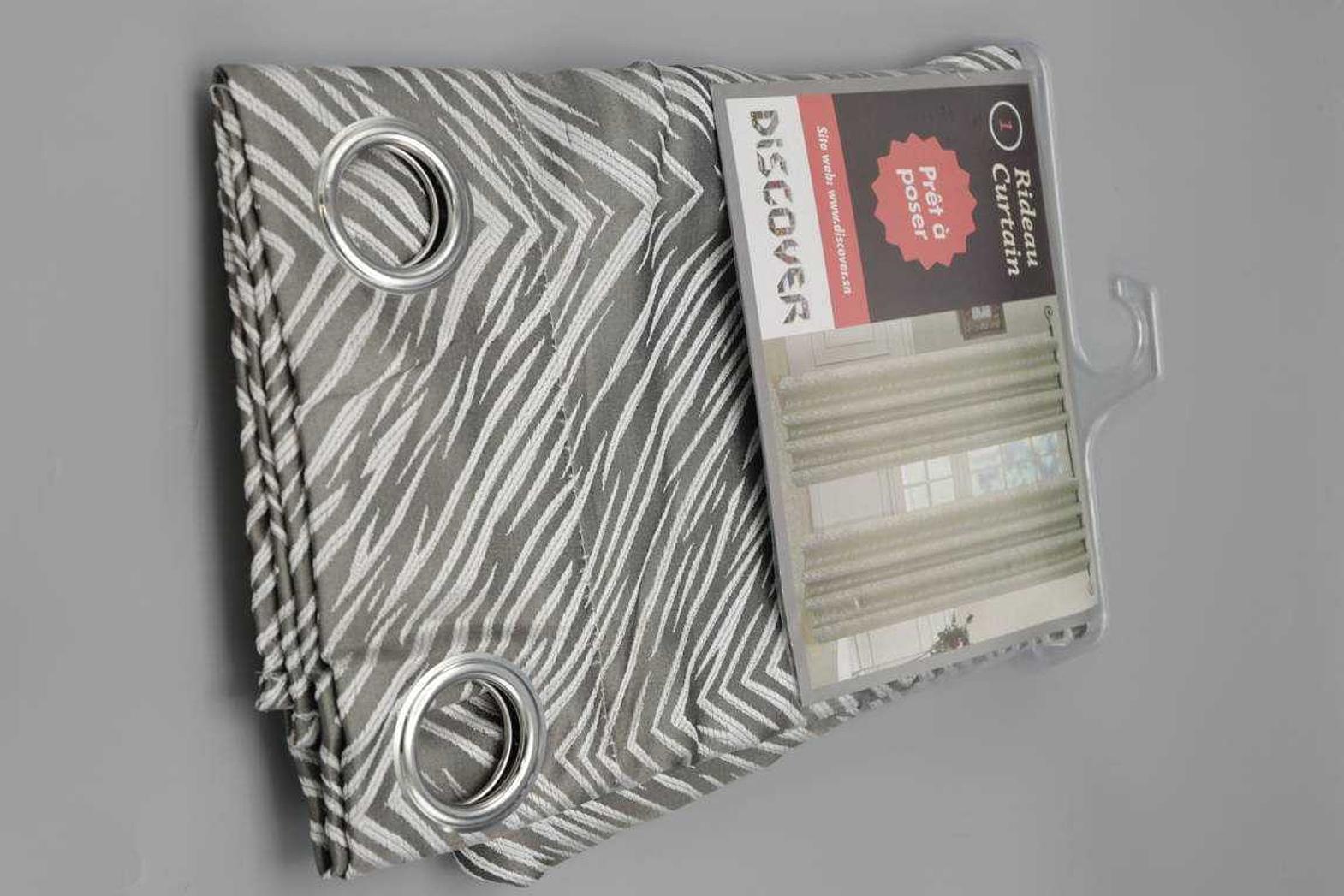 CURTAIN, 8 RINGS SILVER 100% POLYESTER JACQUARD GSM: 150 G GREY #REF:YF10816 GR 140*270# 1CL= 12AC#
