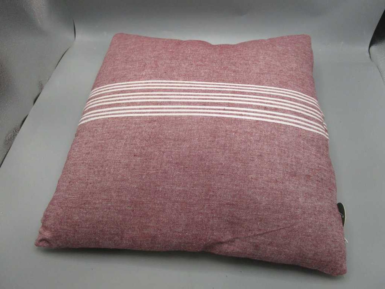 Cushion : front and back in cotton woven stripe fabric with bottom zipper. vacuum packed with 400 gms polyfill filler inside. cover - 100% cotton filler - 100% polyester #ref:ar-22-163-oal230 45xburgundy# 12ac#