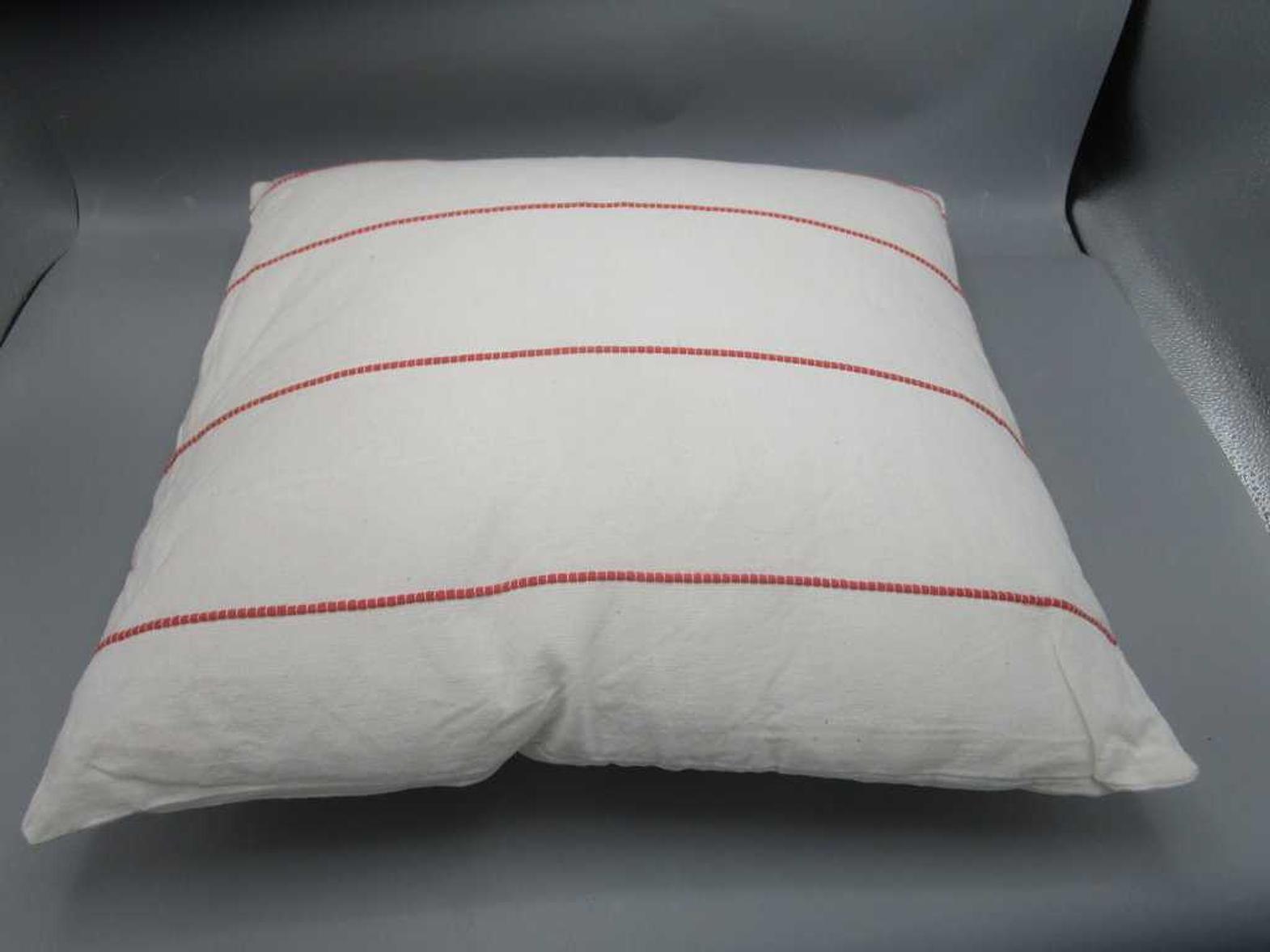 Cushion : front and back in cotton woven fabric with special weave and zipper. vacuum packed with 400 gms polyfill filler inside. cover - 100% cotton filler - 100% polyester #ref:ar-22-134-oal234 45xwhite rust stripe# 12ac#