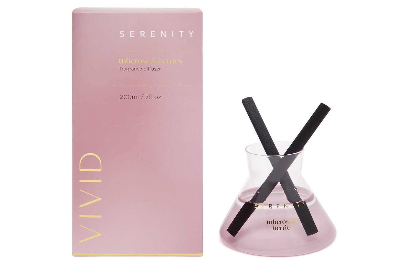 Diffuser tuberose & berries serenity fragrance diffuser - 200ml fragrance in tempered machine made glass jar and 2 black cotton sticks d1xh15cm - packaging in coloured card board box 400g #ref:df200ftb d11,3xh8,5 # 6ac#