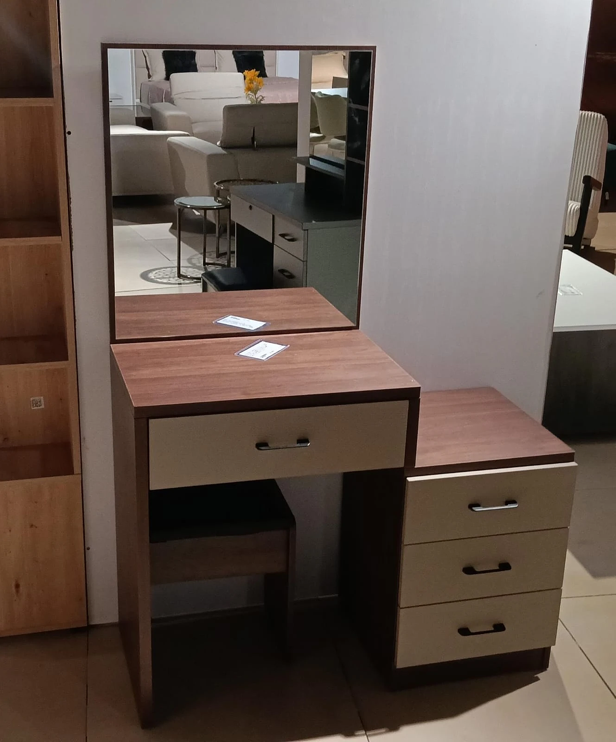Dresser+ mirror + stool gyj8802 walnut+gyj88065 dk beige 15mm mdf +melamine 800*400*153mm #ref:d-019-drs# 4cl#