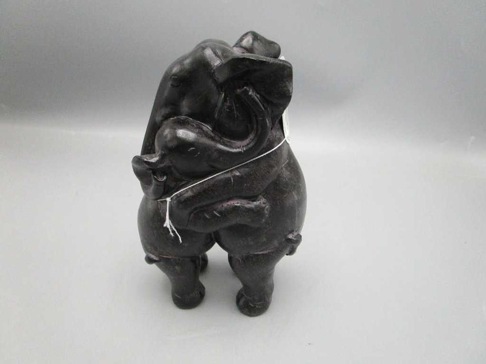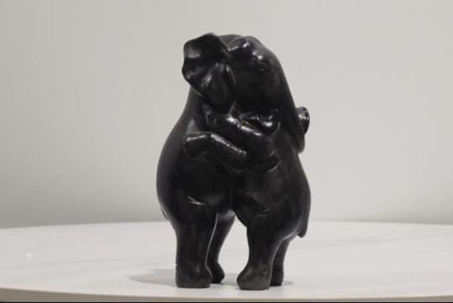 Elephant Hugging Statue – Black, 16 cm