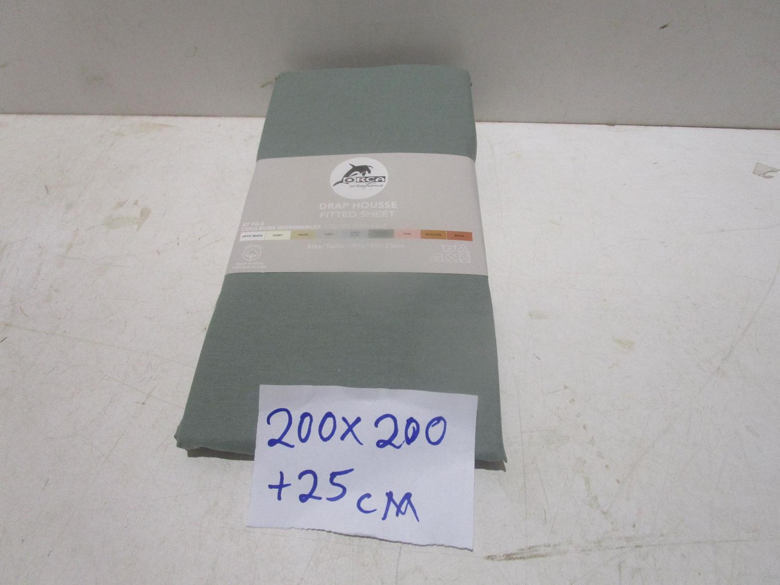Fitted sheet plain col (100 % coton 57 fils 30 x 30 - 76 x 68) grs/mâ². packed in pvc bag with insert card and flat cardoard stiffner #ref:57 fils 200x200+2/6# 10ac#