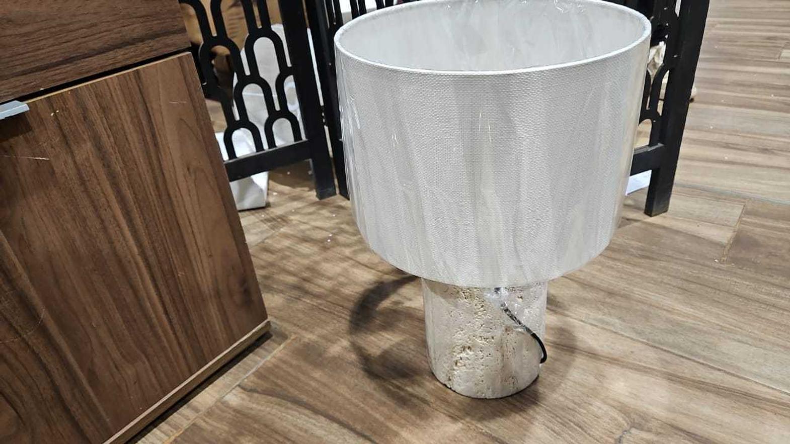 Lamp auch white sand stone base with shade sand stone white sand stone unfilled with vdf106 shade:28x22 base:15x20 #ref:l44-20-wss/f2/vdf106# 2cl#