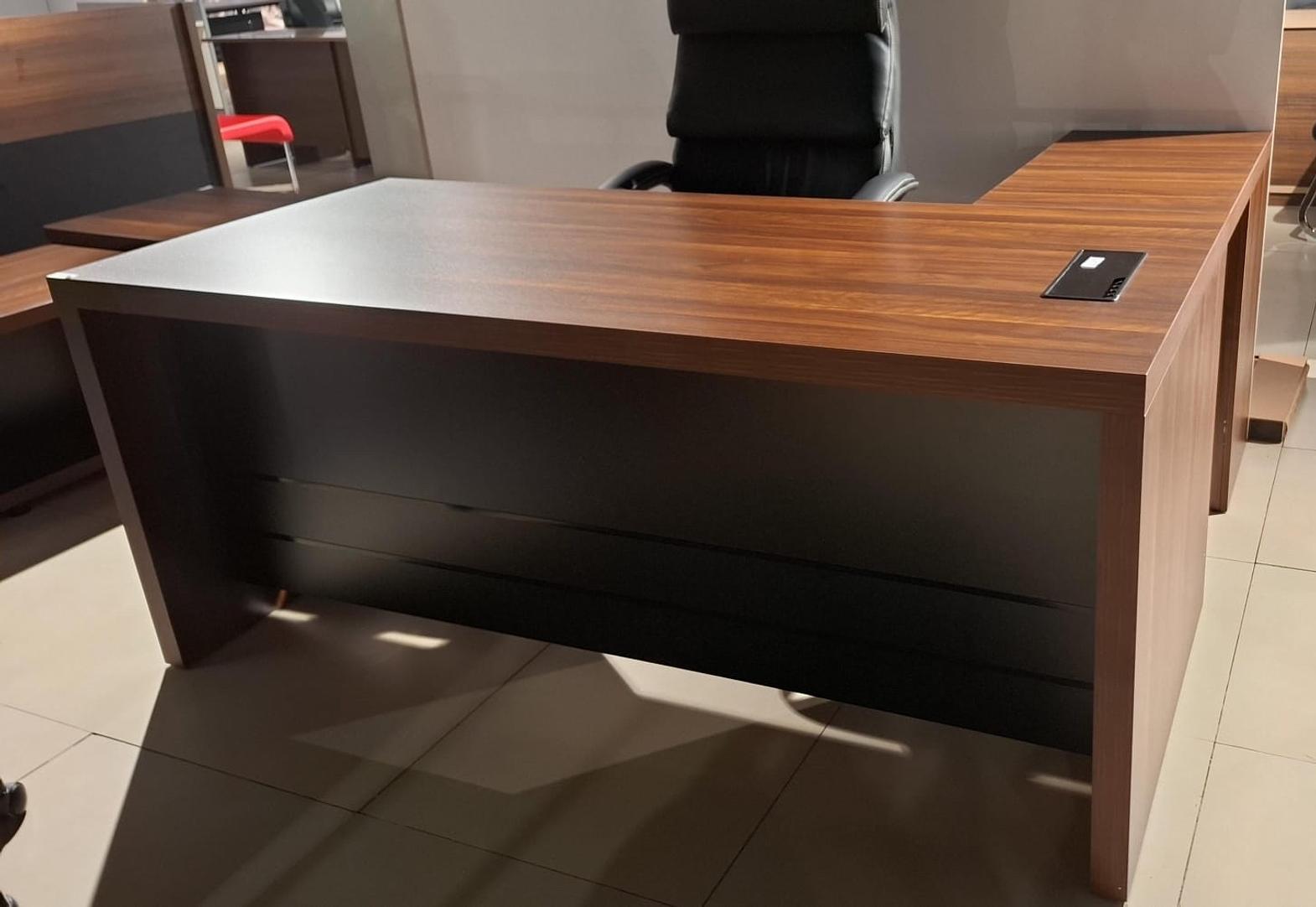 Manager desk by mfc with side table. 211# king walnut + iron black 1800*1600*750 #ref:jd211-1816# 3cl#