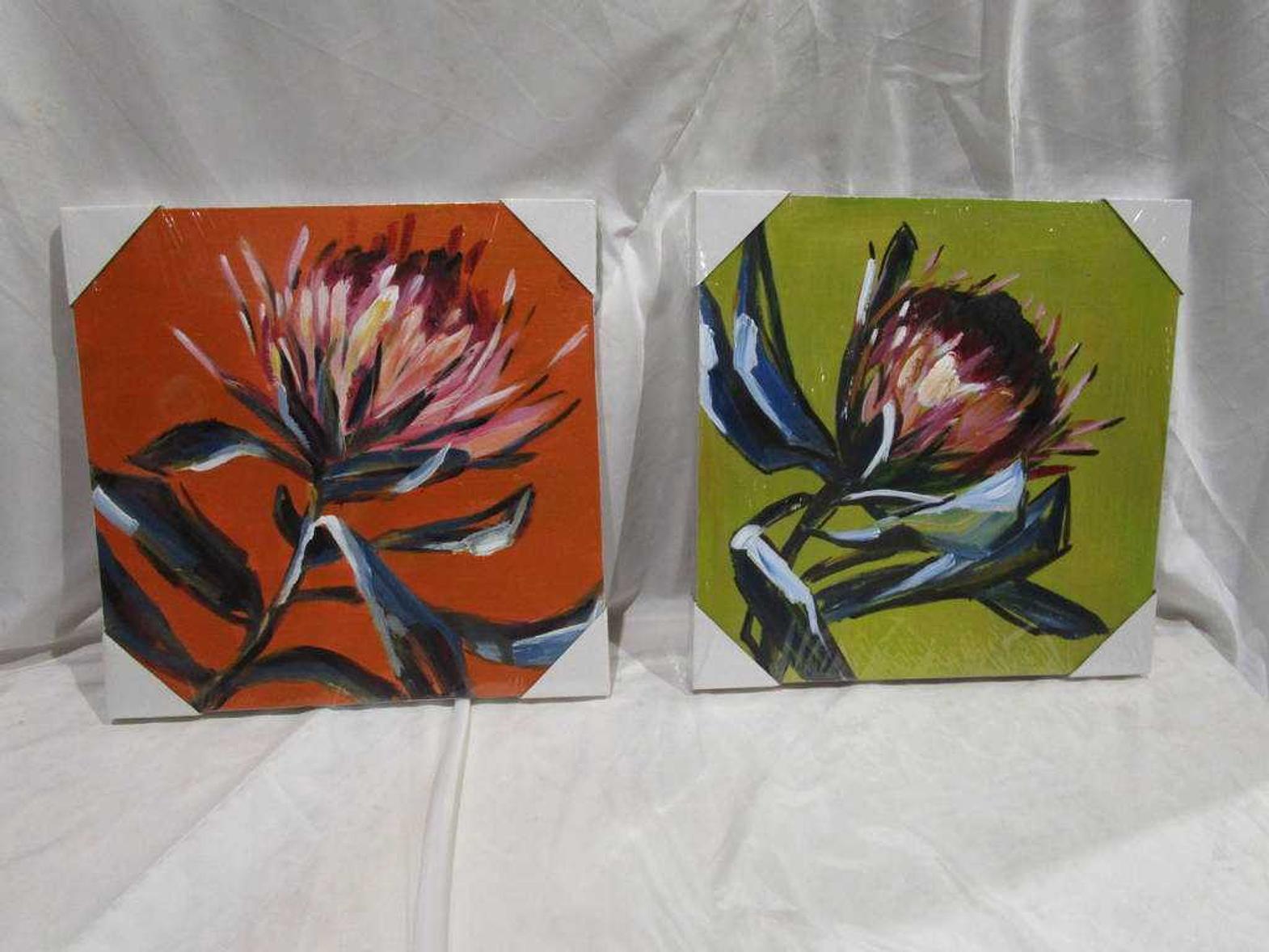 OIL PAINTING SET OF 2 FLOWERS GREEN& ORANGE #REF:H1GCA200247A+C 40X40# 1CL= 9AC#