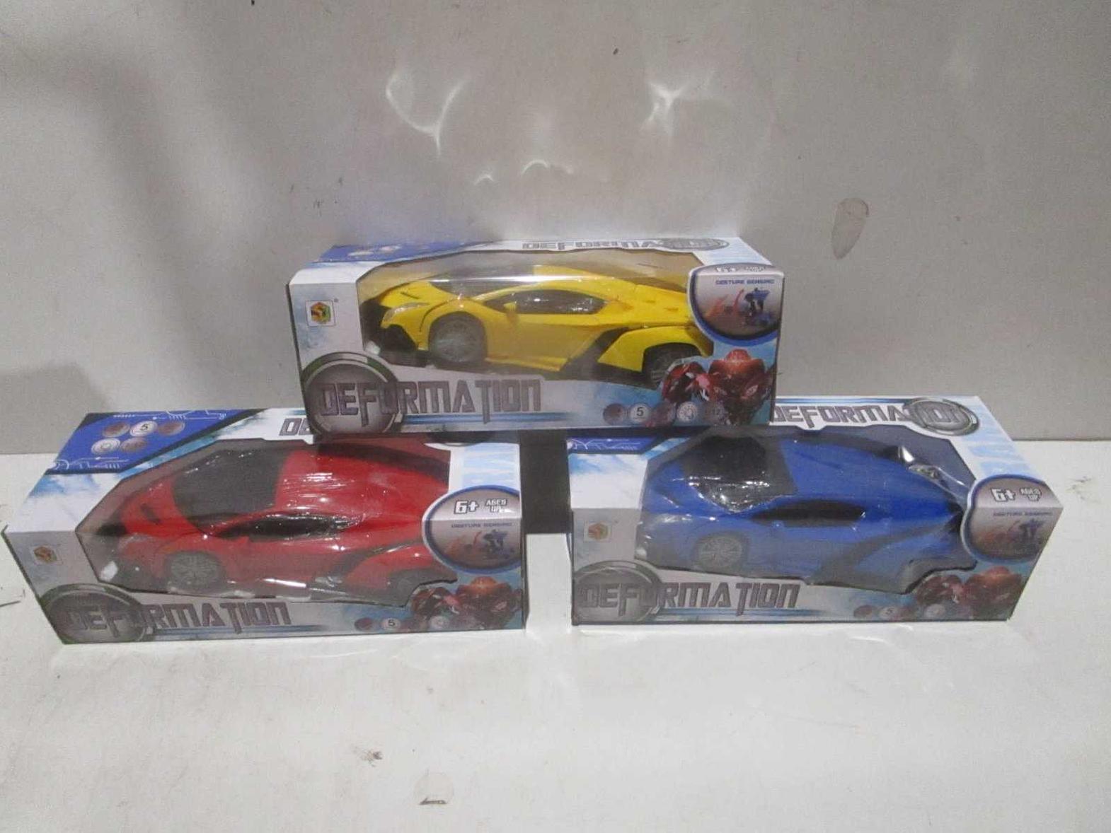 Enjoy interactive play with this remote control deformable car featuring lighting effects, sensor functionality, and USB rechargeable battery. Durable plastic construction, available in 3 colors (red, yellow, blue), and colorful packaging make it a fun and collectible toy for kids and enthusiasts.