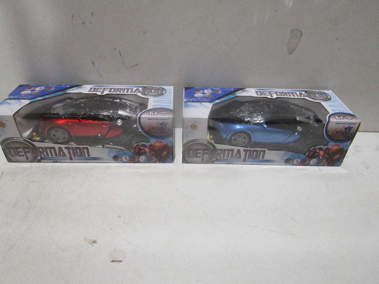 Experience fun and action with this remote control deformable car featuring lighting effects, sensor functionality, and USB rechargeable battery. Durable plastic construction, available in 2 colors (red and blue), and colorful packaging make it an exciting toy for kids and collectors.
