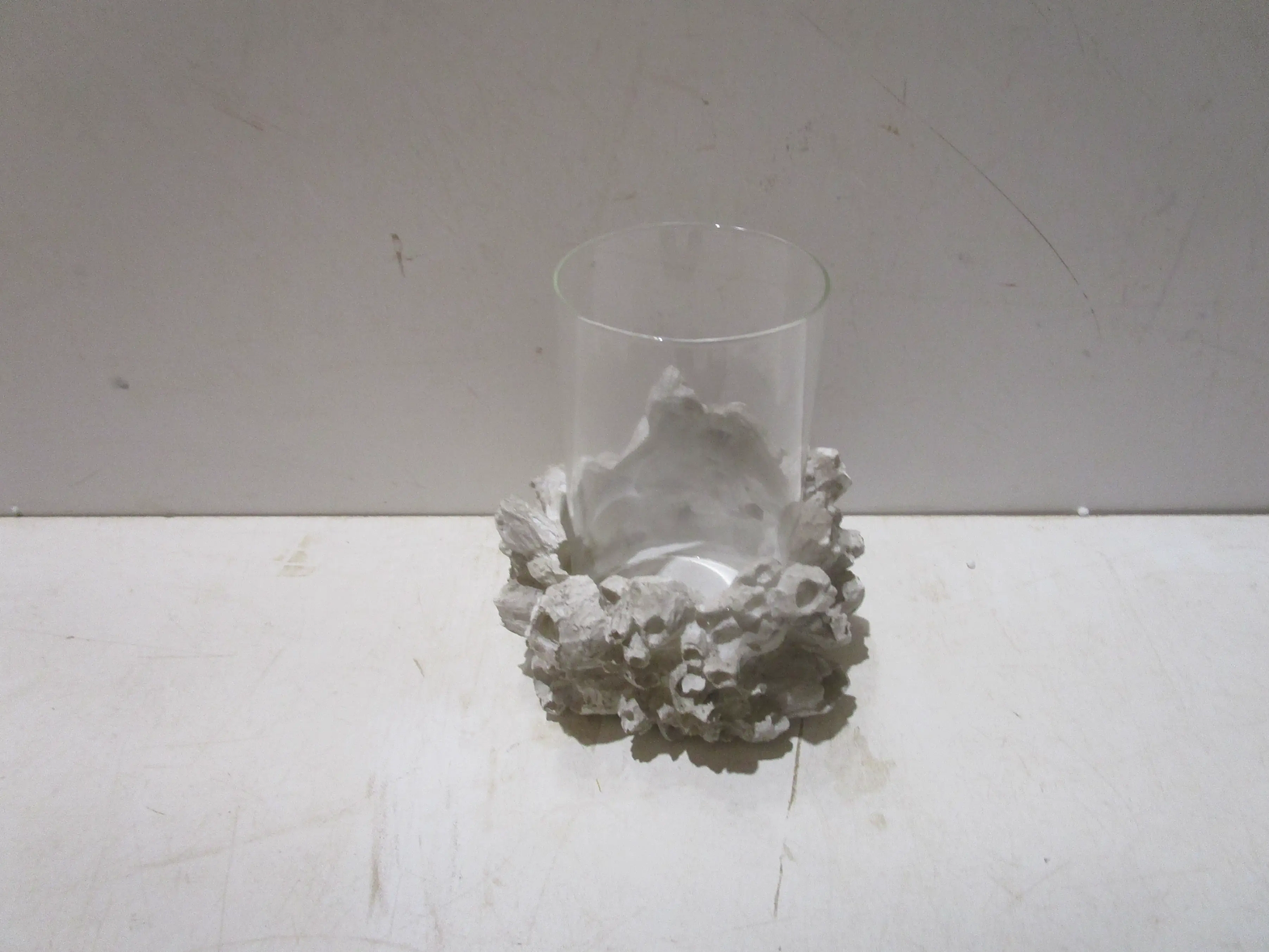 Seaurchin candle resin holder with glass grey resine, grey, with glass vase 17x17x18.5 #ref:cf2180073-f22# 8ac#