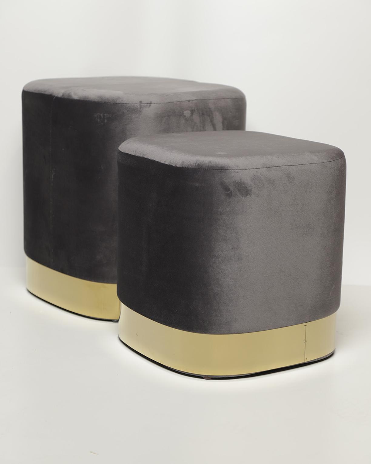 This elegant set includes two square poufs in plush dark grey upholstery, complemented by chic gold feet. Measuring 39×39×44 cm and 34×34×35 cm, they provide versatile seating options for living rooms, bedrooms, or offices. Perfect as extra seating, footrests, or decorative accents, the compact design ensures they fit seamlessly into any space. The soft surface offers comfort, while the gold feet add a modern, luxurious touch. Combining functionality, style, and sophistication, this set of poufs enhances both the aesthetic and practical appeal of your interior. SET OF 2 POUF, SQUARE GOLD FEET DARK GREY39*39*44 34*34*35 #REF:APF19063# 1AC#