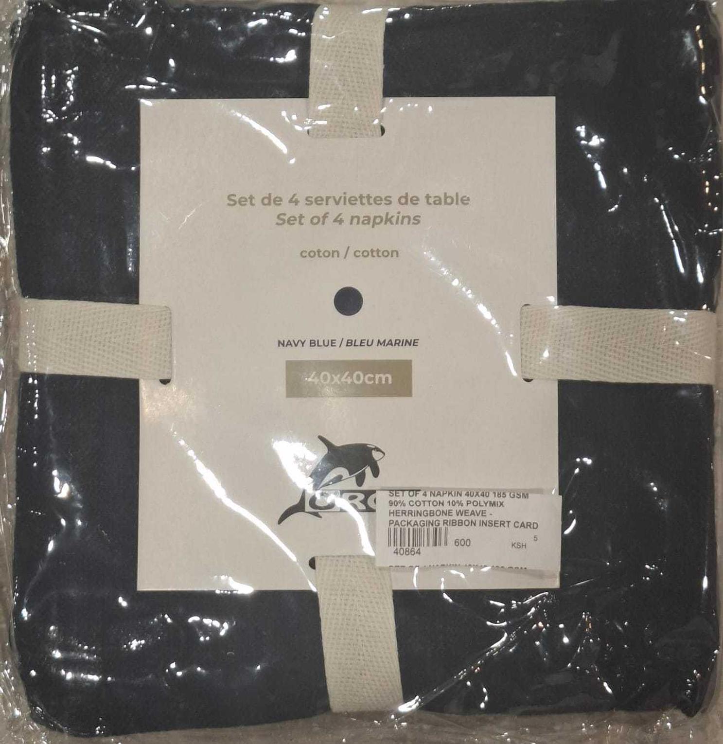 Set of 4 napkin 40x40 185 gsm 90% cotton 10% polymix herringbone weave - packaging ribbon insert card + polybag #ref:tc-5083g kt-4101 40x# 1cl= 50ac#