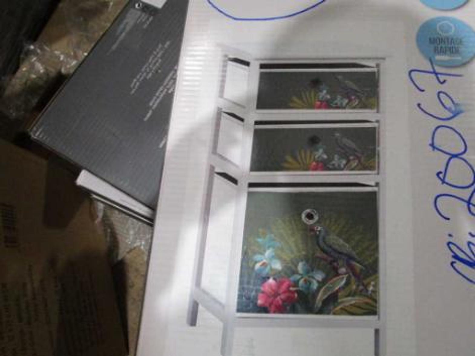 SHELF STORAGE DRAWER 3 BASKET UNIT 36 X 32 X 76 CM MDF+---PRINTED NON WOVEN FABRIC EQUATORIAL #REF:1801062# 1AC#