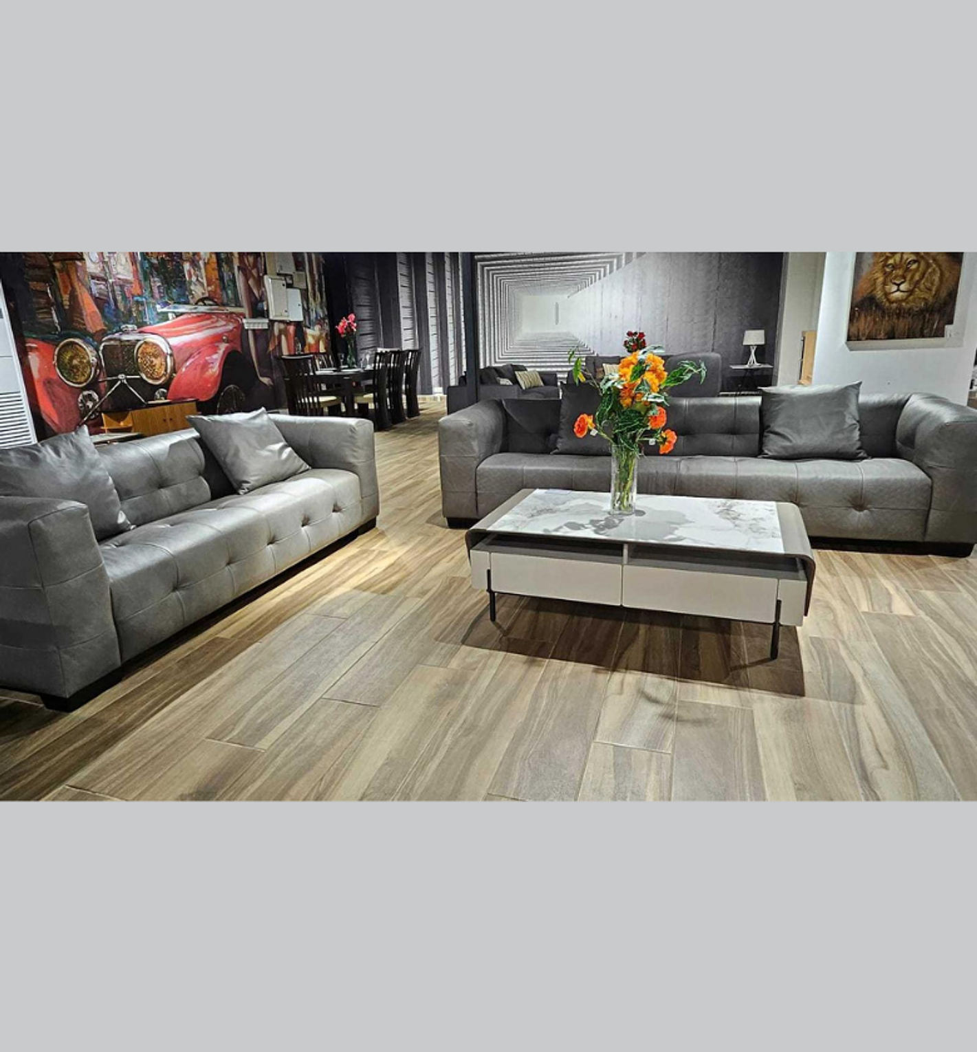 The Sopra sofa set (Ref: MNSFLTH/Sopra Steel-4 + MNSFLTH/Sopra Steel-3) combines sleek modern design with lasting comfort. Upholstered in Granada steel grain leather, this set delivers a refined and contemporary look while ensuring durability and easy upkeep. The configuration includes a 4-seater (300×95×70 cm) and a 3-seater (300×95×70 cm), each designed with clean lines, supportive cushioning, and rectangular cushions in matching upholstery for a seamless finish. Perfect for larger living spaces, this sofa set offers the ideal balance of luxury, practicality, and style. Sofa sopra 4+3 seaters rect. cushions same as body 300x95x70cm/300x95x70cm grain leather granada steel #ref:mnsflth/sopra steel-4+mnsflth/sopra steel-3# 2cl#