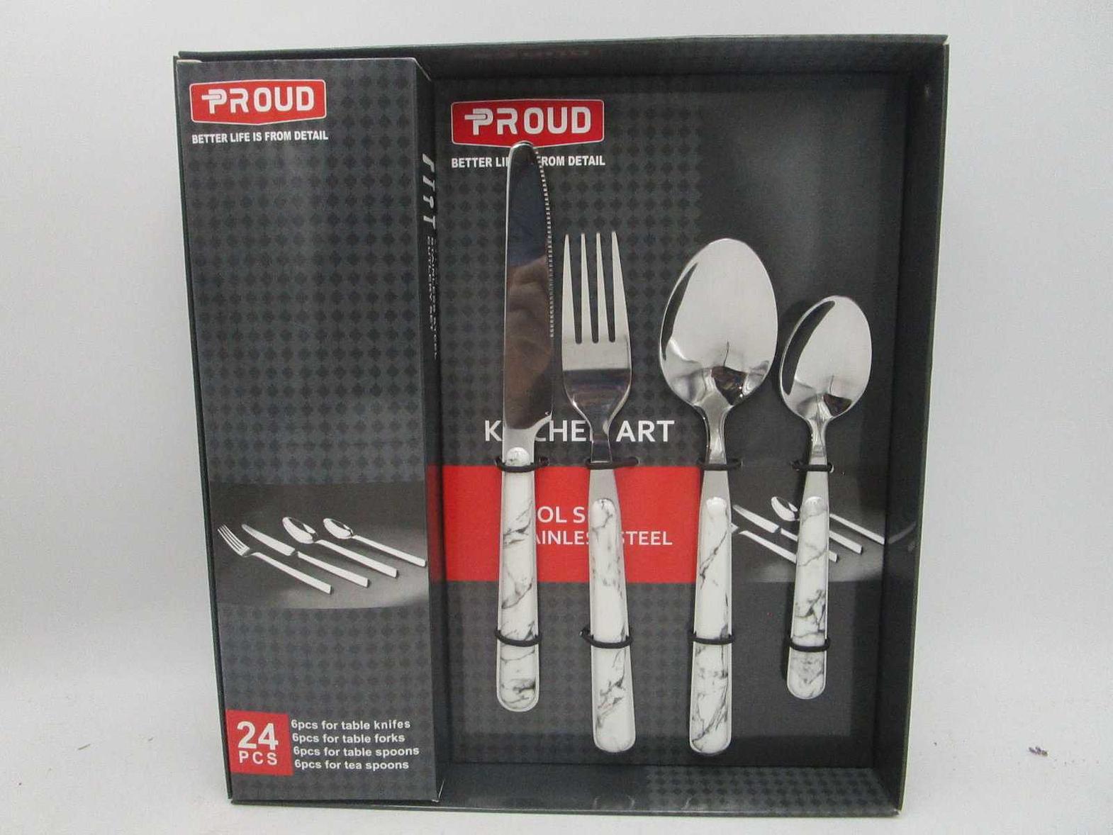 Stainless steel cutlery set white marble handle #ref:t02# 12ac#