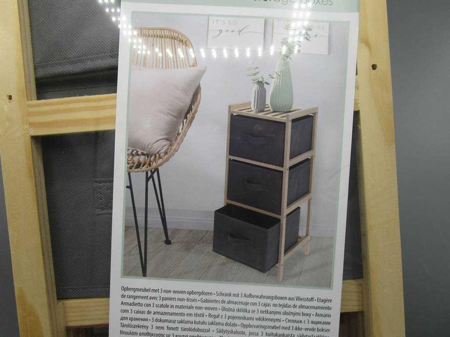 A functional storage cabinet with three compartments, designed for organized and efficient use in any space.