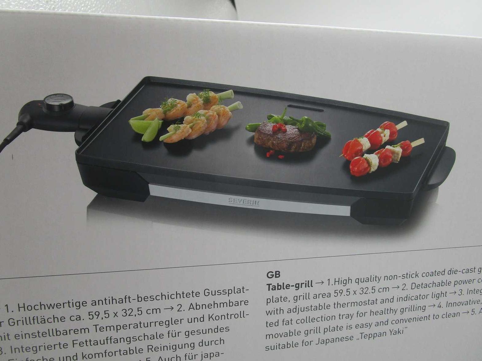 Table grill, approx. 2200w, measurements of the grill plate 59,5 x 34,5 cm, high quality non stick coated plate, stainless steel front panel, fat collection tray, suitable for japanese "teppan yaki" #ref:2397# 2ac#