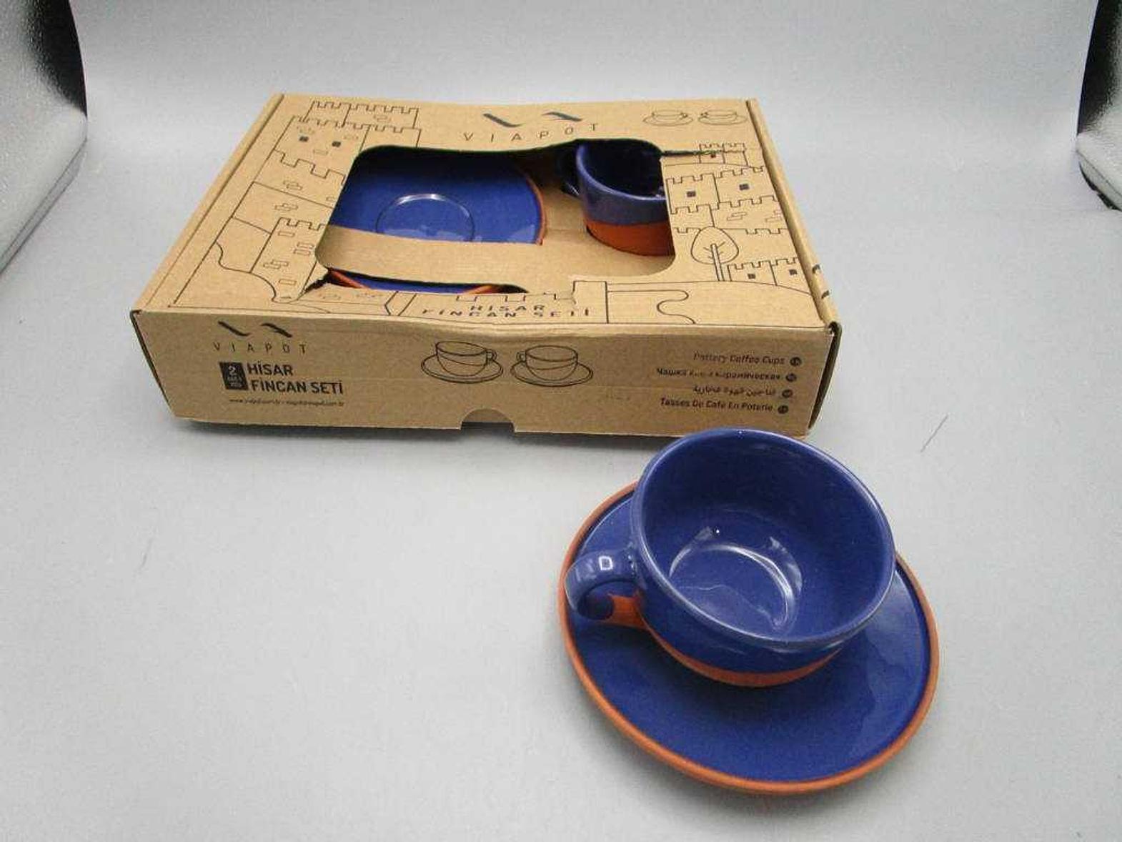 TEA CUP W SAUCER, 9*7 CM, (INNER & HALF OUTER COLOR GLAZED) DISPLAY TRAY 2 PCS SET, BOX PETROL BLUE 9*7 #REF:95010-1# 12AC#
